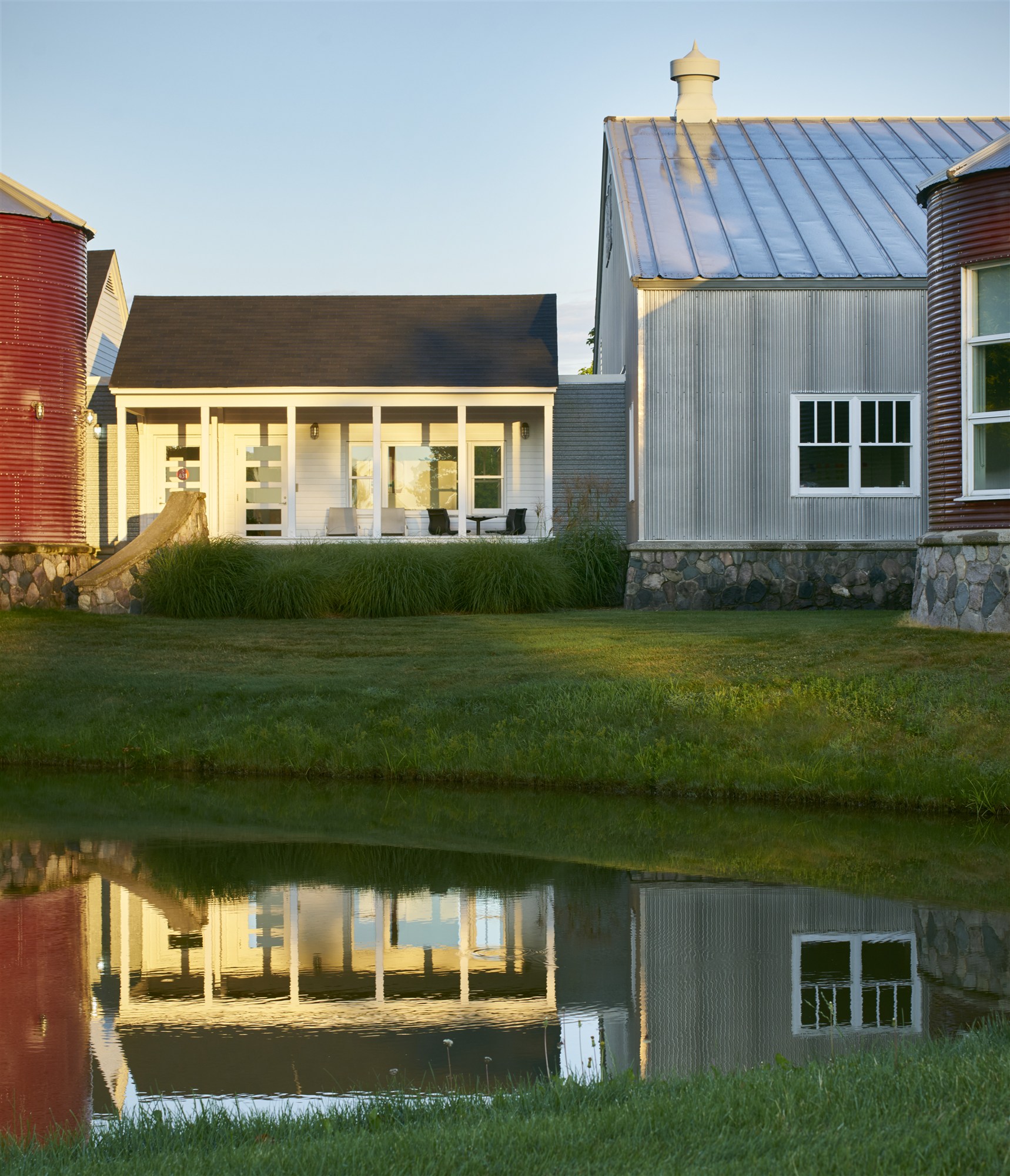 The concept of a yard, which contains many buildings that function in the spirit of collective production, inspired the creation of a design yard for Herman Miller, Inc., to house its design, development, manufacturing engineering, and testing facilities. The complex incorporates modified prefabricated metal structures, silos, and houses, which were flexibly designed to accommodate changing uses and future expansion. Twenty-seven years after the Design Yard opened its doors, the complex is still living up to its original intent. The durable, low maintenance exteriors have aged gracefully. Open, flexible interior spaces have accommodated changes in how people work, as well as evolving technologies. The whole fits well into its rural environment and serves as an appropriate backdrop for Herman Miller’s classic modern pieces and new designs for furniture systems and products.