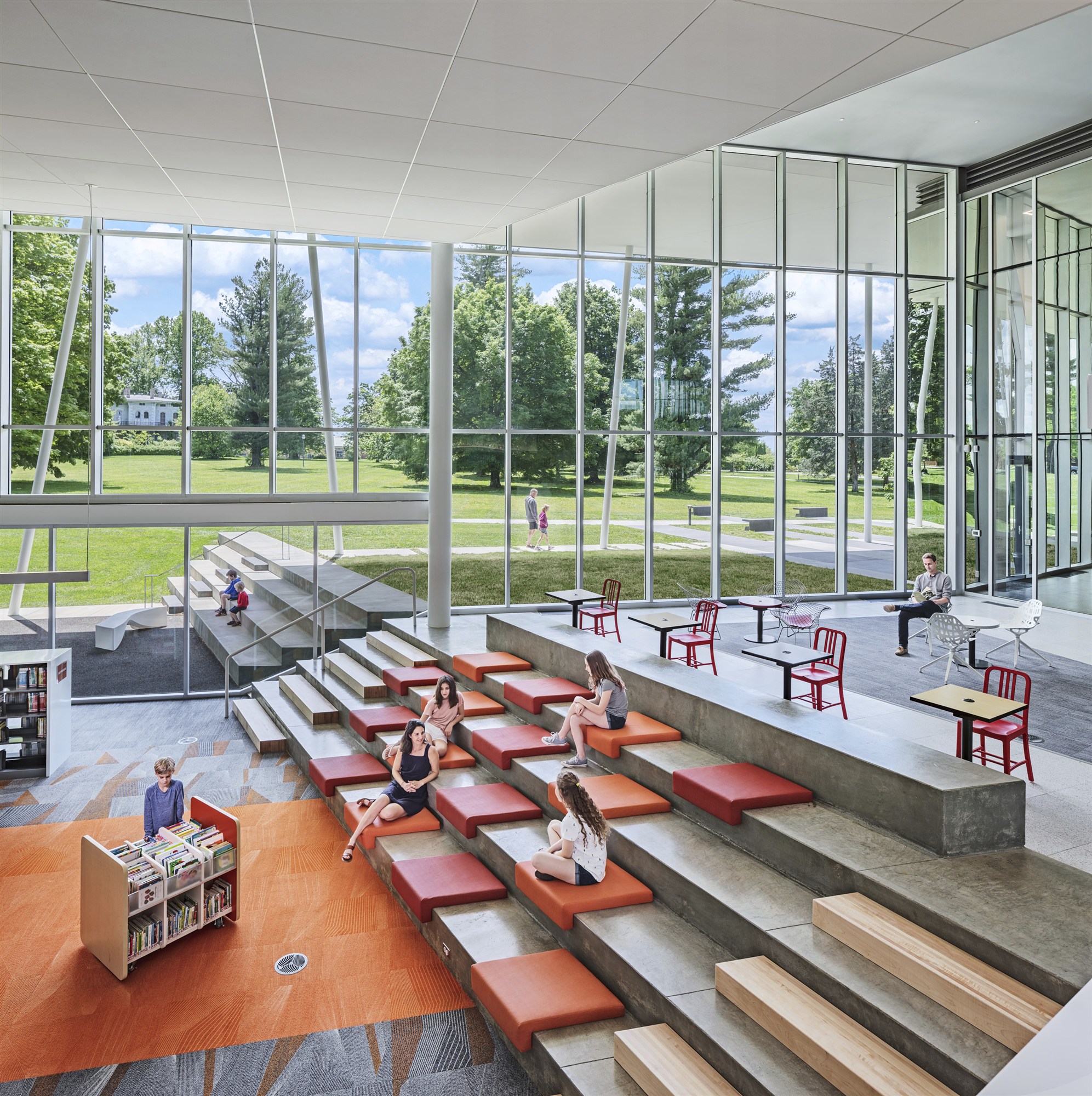 “The transparency of this library-in-a-park is amazing. The interiors are filled with natural light and accented with color in all the right places.”