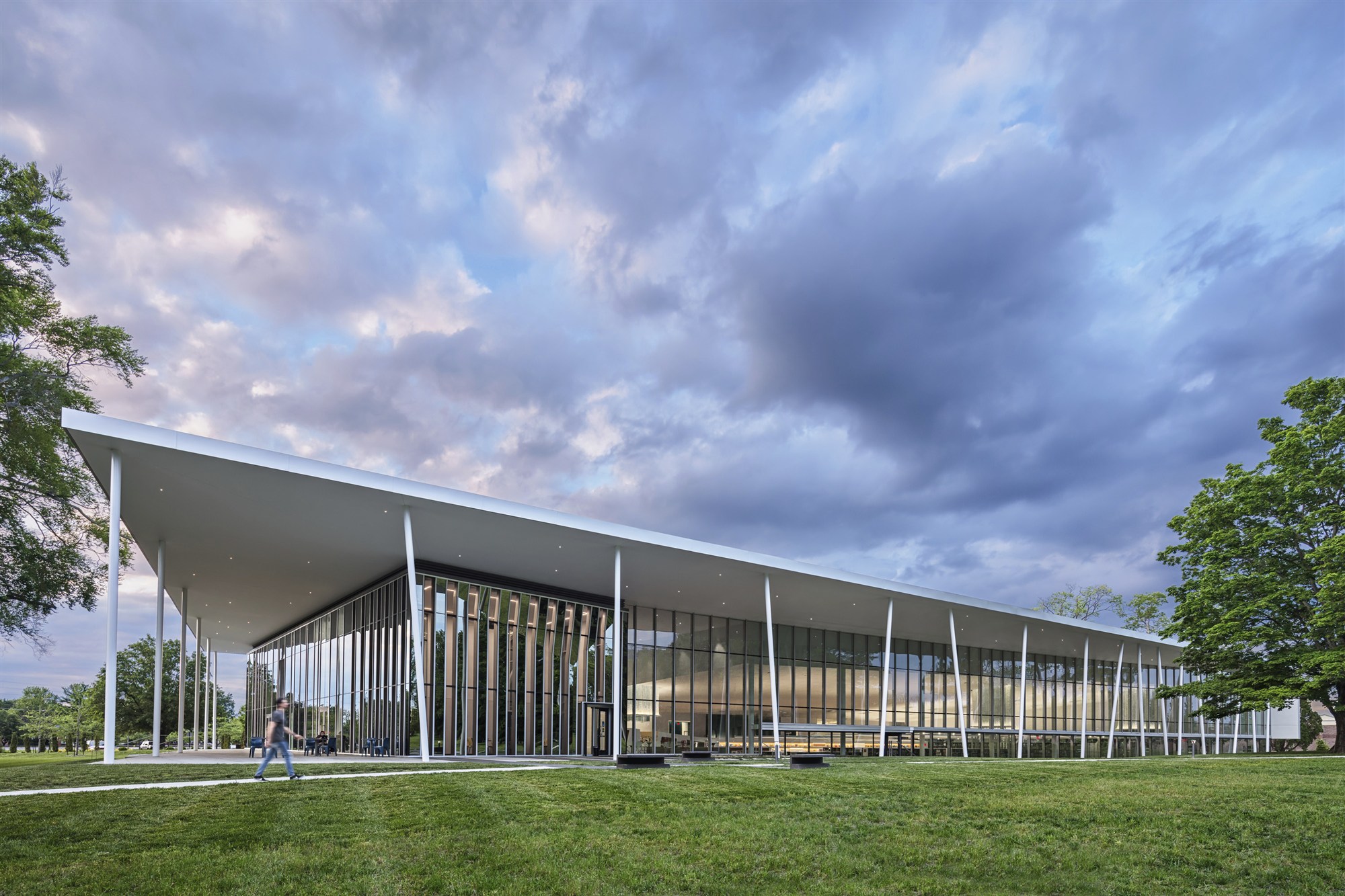 Located adjacent to a historic house and landscape, Louisville Free Public Library’s third regional library brings service to an outlying region of the city. Conceived as a pavilion in a park, the building offers sweeping views of the park and historic site. It features a special technology-driven classroom, highly flexible reading room, makerspace with audiovisual lab and demonstration kitchen, and a college corner in the teens’ area. A column-free interior, multi-function access flooring, and rooms enclosed by movable furnishings support adaptability to meet perpetually evolving library demands and ambitions. Sustainable design strategies contributing to the building’s LEED-NC v.3 Gold certification include siting the building to take advantage of natural daylight and a geothermal mechanical system, among numerous others. Circulation for the first month of operation broke the library system’s previous record by 25%.
