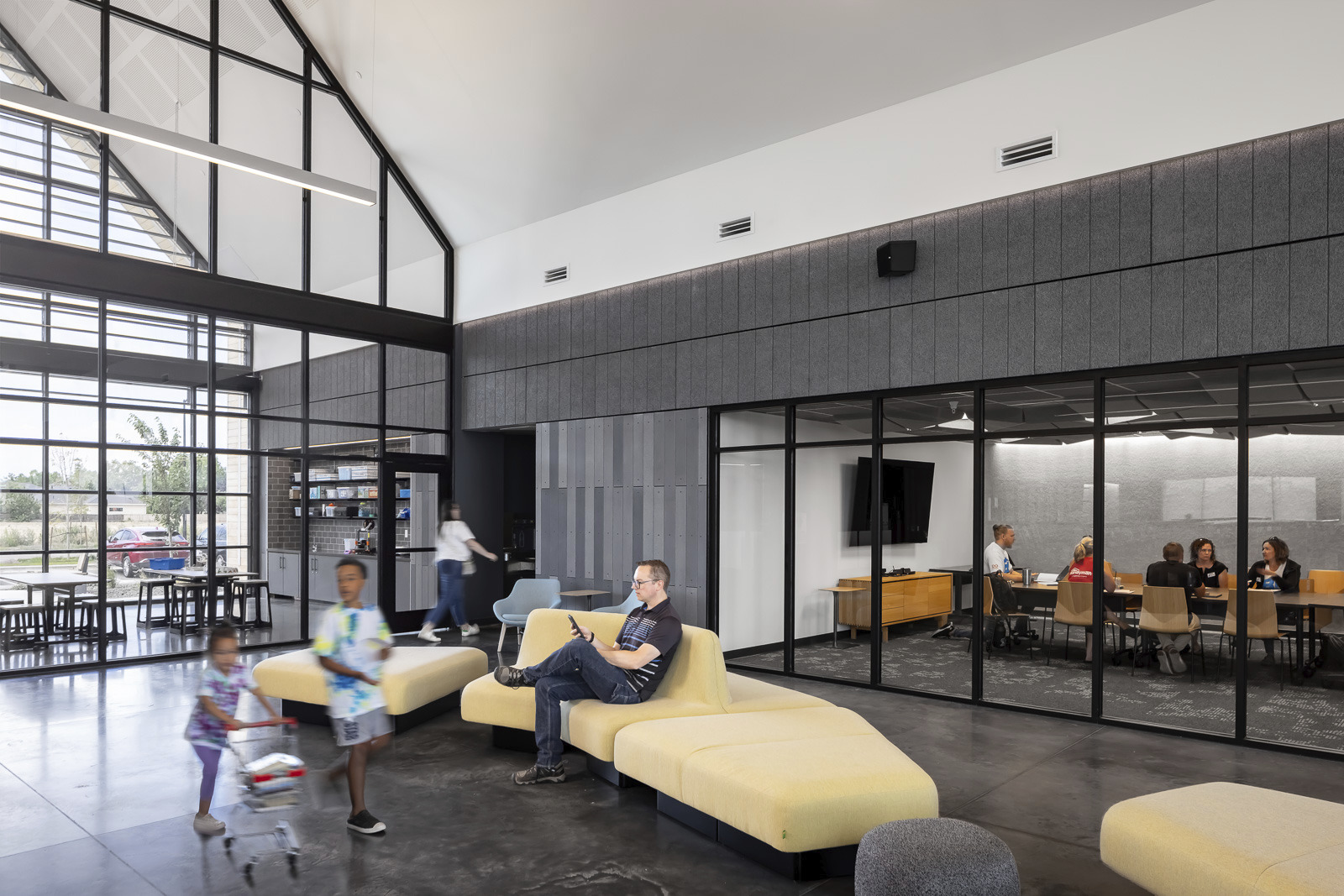 This new community library creates connections in the community with a focus on removing barriers to access and expanding all-inclusive services and programs. In response to a public input process and focus group sessions with parents and local educators, the design team developed a design that supports the needs of neurodivergent community members, going beyond merely providing a dedicated sensory space to creating a holistic library experience approach focused on sound, durability, lighting, extension of tactile surfaces, and ease of building use. An after-hours area gives the community 24/7 access to holds, a self-service check-out, Wi-Fi, and seasonal items. The library serves as a family-oriented gathering and learning center designed to inspire creativity and a sense of purpose.