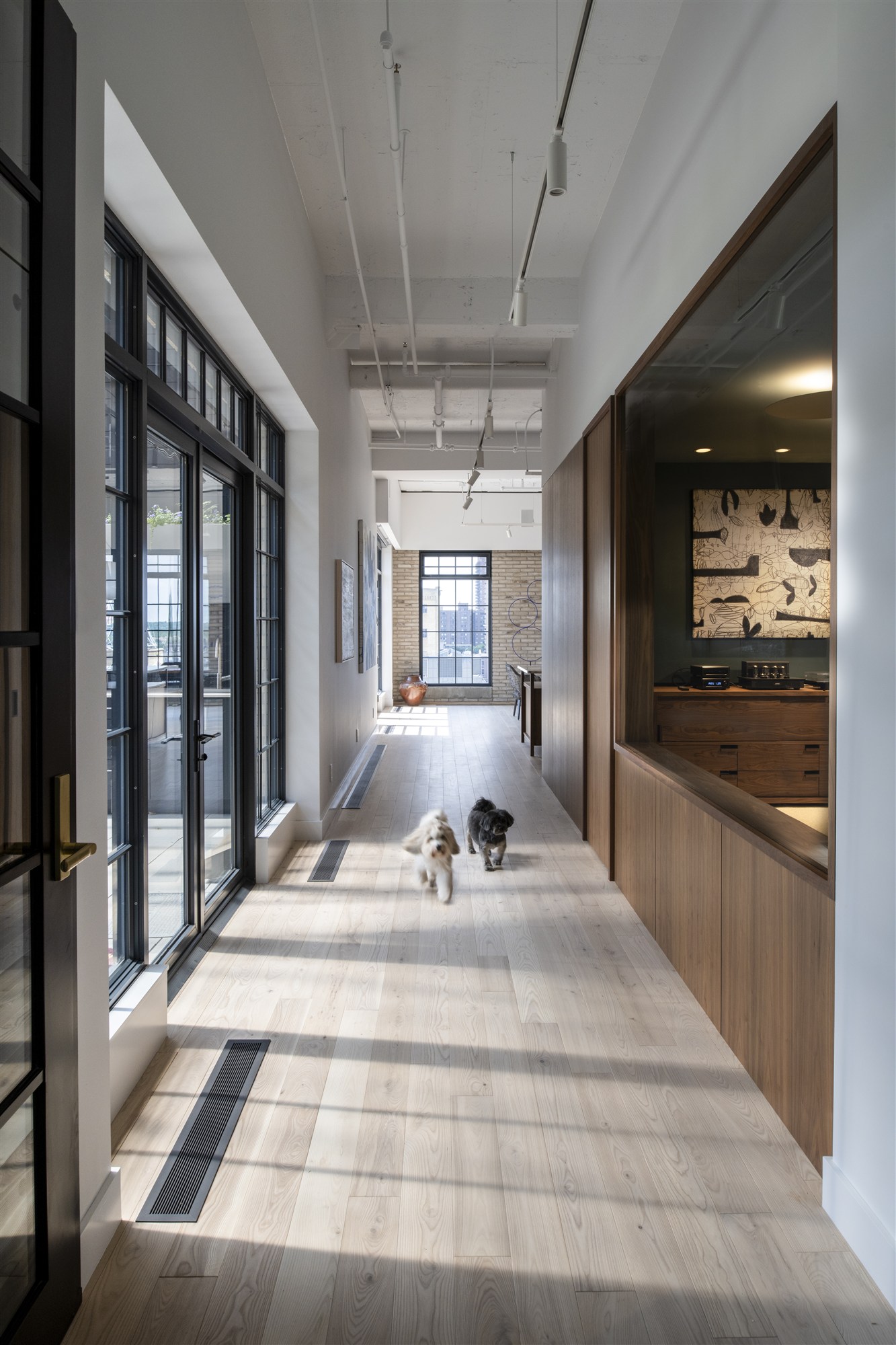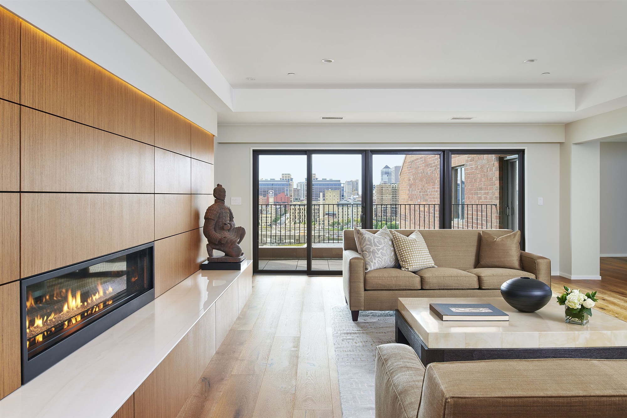 This project involved a full renovation of a penthouse loft within a historic mill utility building that was converted into housing in 2003. Key goals for the project included maintaining homeowner health and well-being, supporting aging in place, and ensuring the reuse of existing items within the space through donations. 9.49 tons of items, with a $150,000 resale value, were donated to Better Futures, a nonprofit product resale organization, including millwork, appliances, light fixtures, plumbing fixtures, fireplaces, doors, and hardware. Focusing on occupant health, the design team selected only Red List free certified and natural materials.