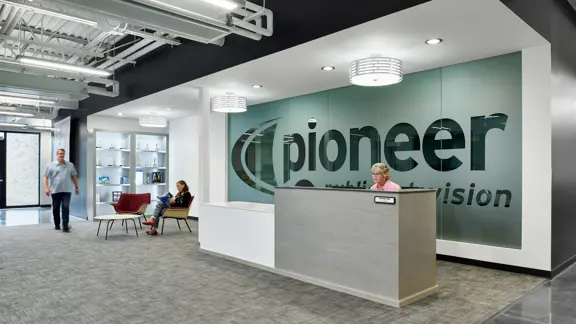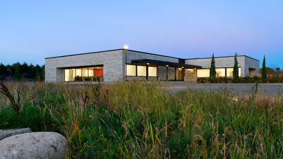 Located within a restored native prairie on land donated through a collaboration of public and private investment, this new broadcast facility supports direct public participation in regional arts, politics, land stewardship, and other issues relevant to residents of southwest and west central Minnesota and portions of Iowa, North Dakota, and South Dakota. Pioneer PBS broadcasts locally-produced programs, as well as national PBS programming. The building’s masonry exterior provides a visual connection to the geography, color, and texture of the adjacent Blue Devil Valley Scientific and Natural Area and Minnesota River Valley. All interior spaces connect to the prairie surroundings through large windows that offer views in each of the four cardinal directions. The building includes editing suites, TV broadcast studios, green rooms, office space, conference rooms available for public use, and an indoor service bay for Pioneer PBS’s fleet of mobile broadcast studios.